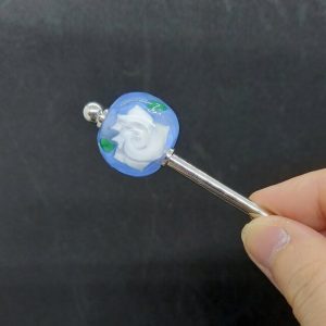 白薔薇の水中花とんぼ玉・かんざし~スカイブルー~(一点物)