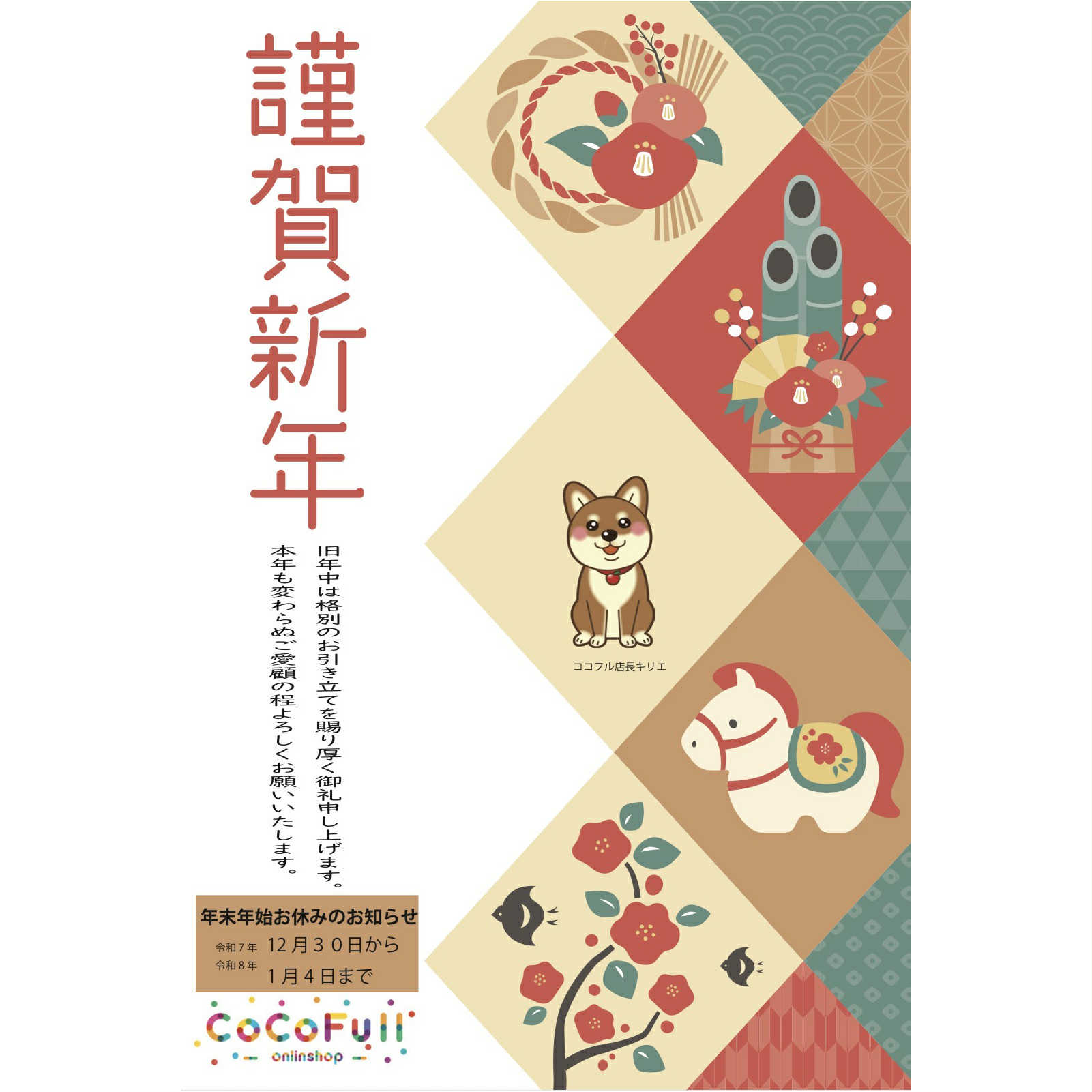 休業期間中のご注文、お問合わせについては、休業日明けの2026年1月5日(月)以降に順次対応させていただきます。なお、